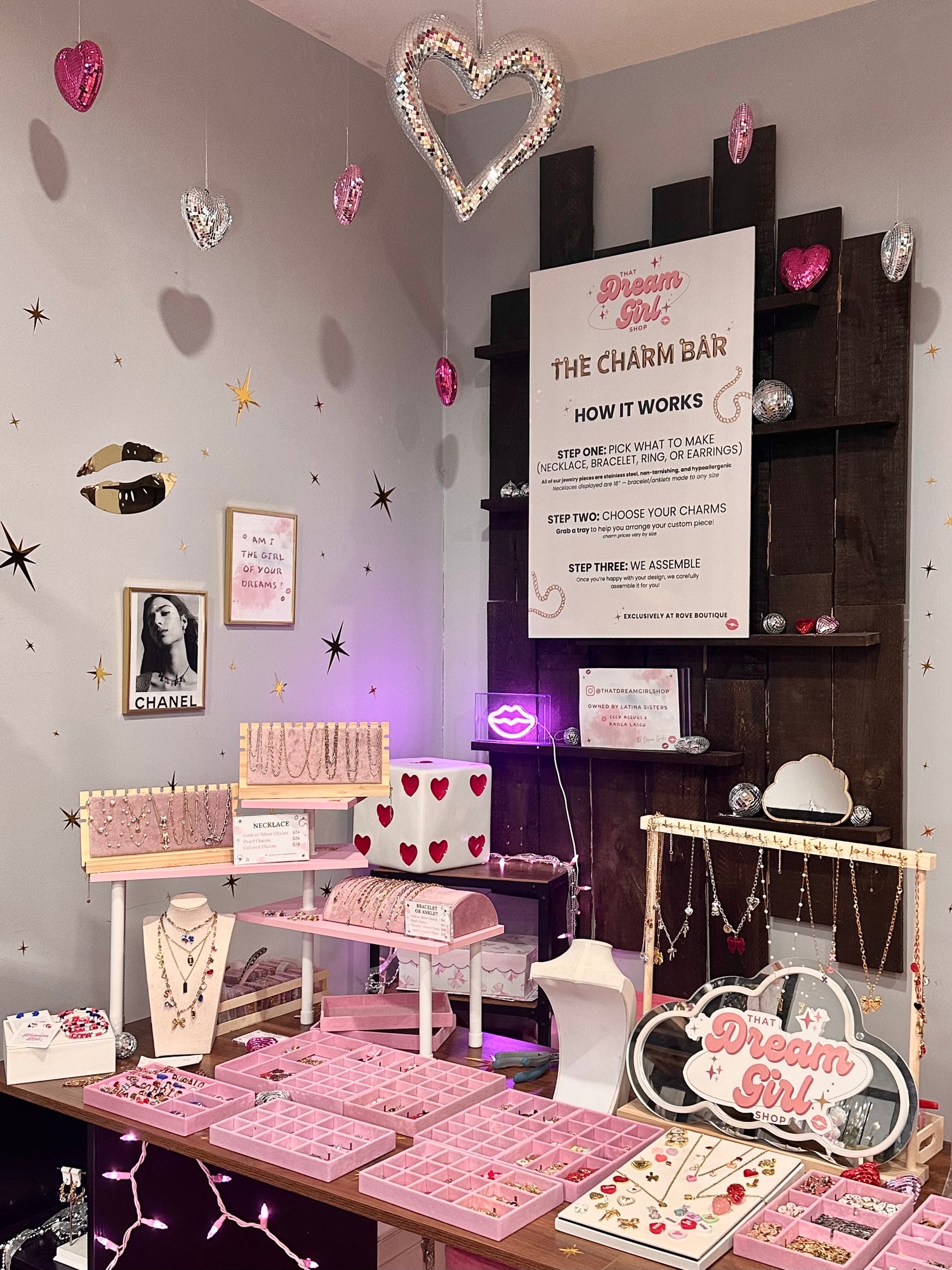 Two Latina sisters from Mexico with a dream to open their very own store together. Karla (pictured on the left) and Cecilia (on the right), started That Dream Girl Shop on April of 2024 as a pop-up charm bar. The business has grown and expanded to carrying 300+ charm options and 30+ chains to help you make your own necklaces and bracelets.