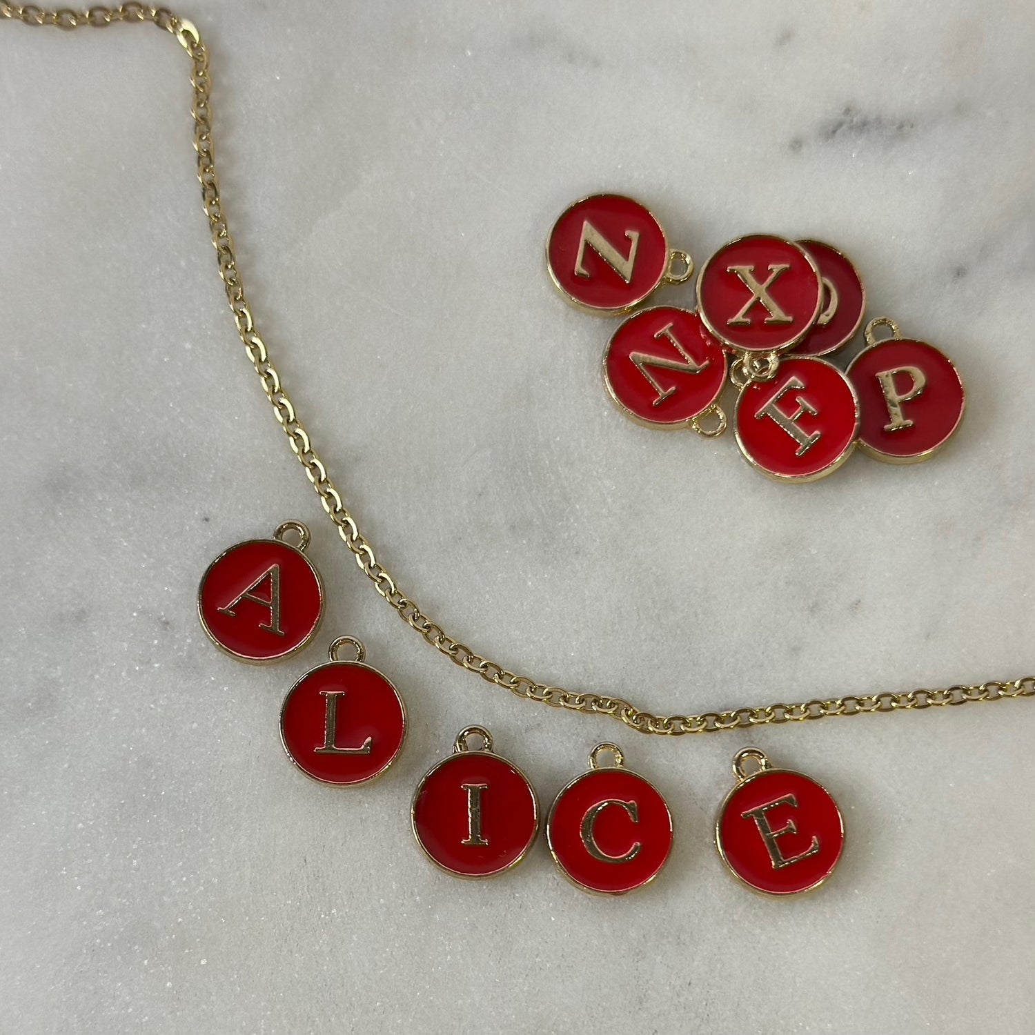 All charms have their material in the description. If you would like a piece that is completely tarnish free + water resistant please select 18k gold plated stainless steel pieces only.